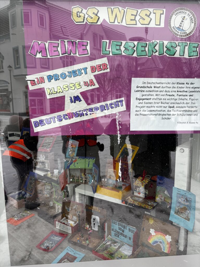 Ein besonderes Leseprojekt erlebten die Schülerinnen und Schüler der Klasse 4a an der Grundschule West im Deutschunterricht. Jedes Kind wählte eigenständig ein Buch aus und präsentierte dessen Inhalte anschließend kreativ in einer sogenannten Lesekiste und einem Lesetagebuch. In den liebevoll gestalteten Kisten wurden Figuren, Schauplätze und spannende Szenen anschaulich dargestellt.